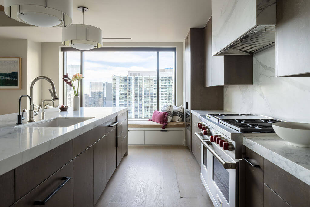 On the surface, Residence #3220 is a three bedroom, three-and-one-half bath residence, with just over 3100 finished square feet, plus a large covered balcony. And while that’s important information, that doesn’t begin to describe the experience of owning this home. Purchased by the current owners in 2019, it has undergone a complete transformation, turning what was a lovely home into a remarkable one. Each element, from warm woods, to elegant marble, to concrete and steel was specifically selected to foster a sense of authentic, modern charm. It’d be easy to imagine yourself hosting friends and family, and just as easily keeping the time private and intimate. There’s a peacefulness to the space that creates the feeling of “home”. And yet, having an urban retreat provides just the right amount of connection to the vibrancy of the city.